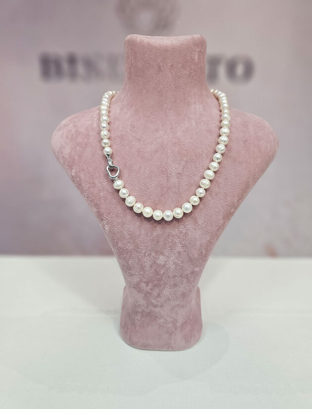 Heart ogrlica izrađena je od bisera i ukrašena srebrnom kopčom u obliku srca, simbolom ljubavi i bliskosti. Nježna, romantična i elegantna, savršena za poklon ili posebnu priliku.