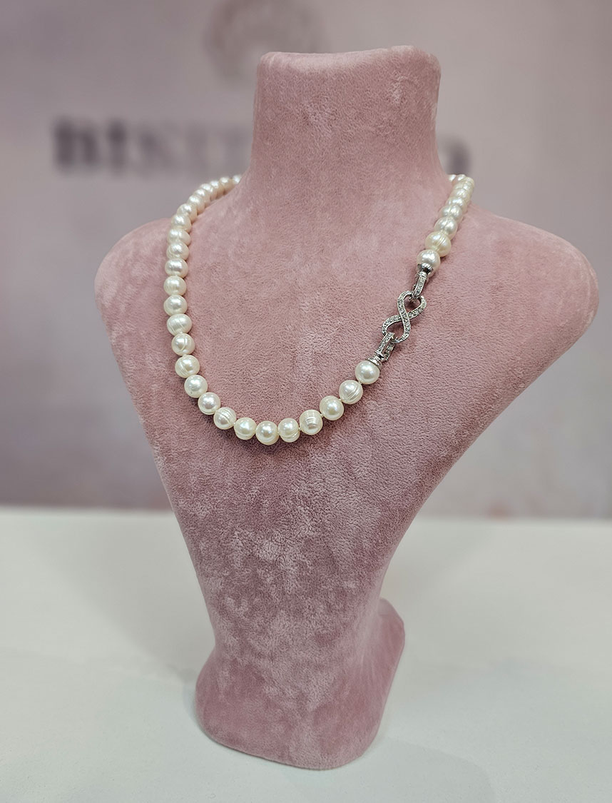 Infinity ogrlica izrađena je od bisera i ukrašena srebrnom kopčom oblikovanom poput infinity simbola, koji predstavlja beskonačnost, trajnost i neraskidivu povezanost. Elegantna, simbolična i savršena kao poklon za posebne trenutke.